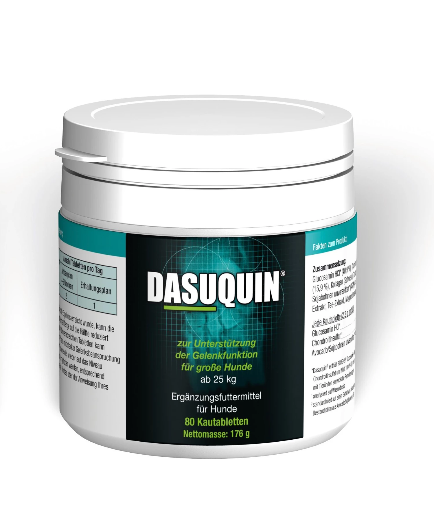 Dasuquin® bietet sehr grosse Sicherheit. Verträglichkeitsstudien bei Hunden haben keine unerwünschten Wirkungen nachgewiesen. Leichte Magen-Darm-Verstimmungen, ähnlich wie bei einem Futterwechsel, können bei vereinzelten Hunden auftreten. In solchen Fällen soll Dasuquin® zusammen mit der Nahrung verabreicht werden.