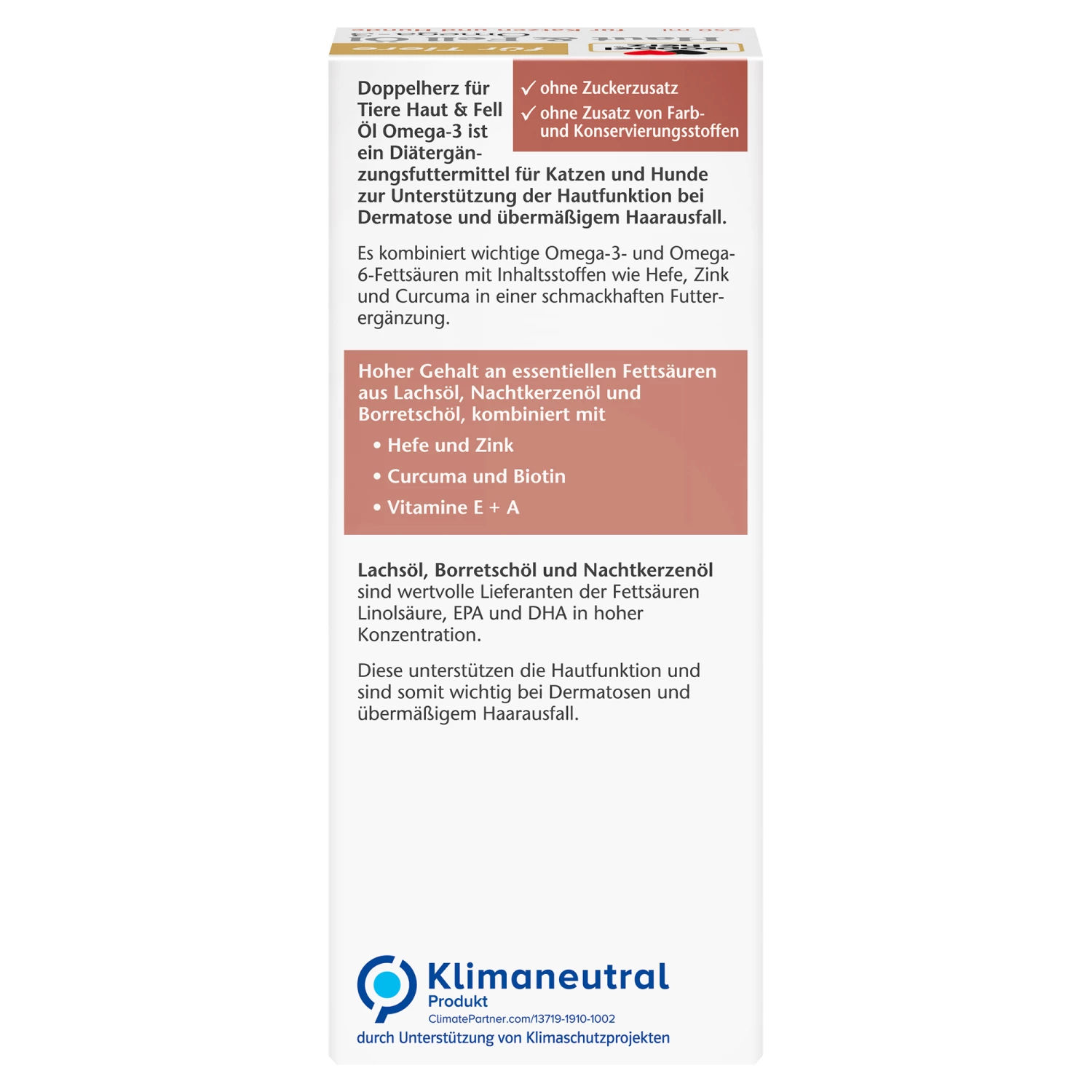 - Für ein glänzendes Fell und zur Unterstützung der Hautgesundheit