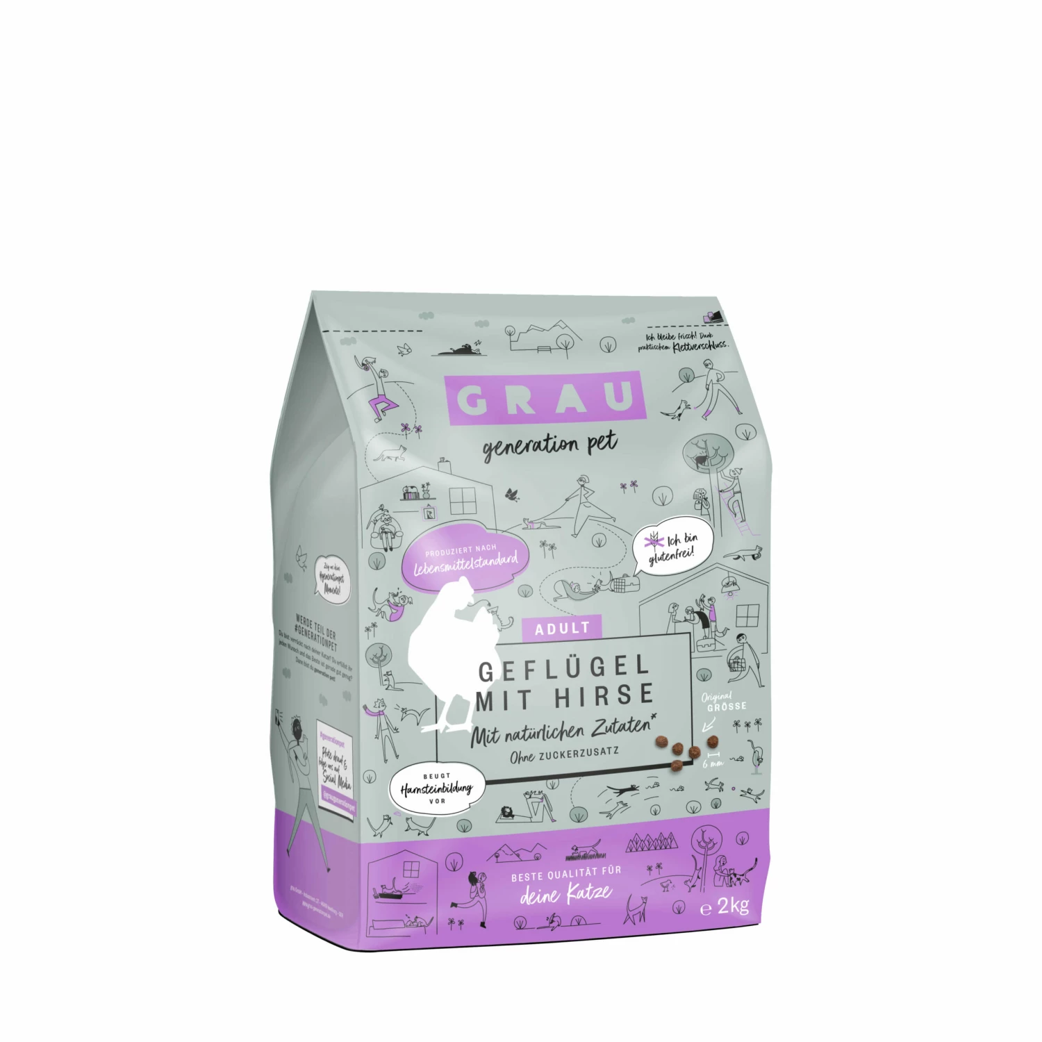 Leicht verdauliches Geflügel und glutenfreie Hirse vollgepackt mit Eisen, Kalium und weiteren Mineralstoffen von GRAU versorgen deine Katze mit allem, was sie benötigt. Leinsaat liefert zudem hochwertige Ballaststoffe und enthält einen hohen Anteil an Omega-Fettsäuren, die Haut und Fell deiner Samtpfote unterstützen. Obendrauf sorgt das enthaltene Methionin dafür, den pH-Wert des Urins zu senken, um der Bildung von Harngries (Struvit) vorzubeugen. Gut zu wissen: Dank des moderaten Proteingehalts ist das Mahl auch für alle Stubentiger und Senioren geeignet.