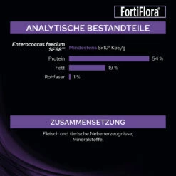 PURINA PRO PLAN FortiFlora Canine enthält das mikroverkapselte Mikrobakterium Enteroccus faecium (SF68), ein lebensfähiges Probiotikum zur Unterstützung der Darmgesundheit und des mikrobiellen Gleichgewichts im Darm von Hunden